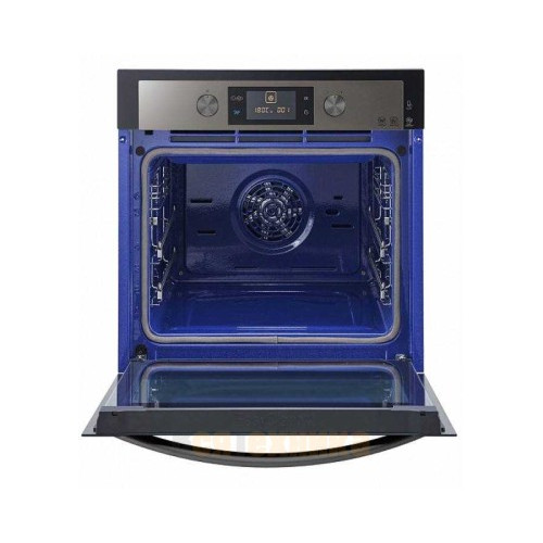 Модель выполнена в классическом черном цвете с элегантными серебристыми акцентами ручки и панели управления. Такой дизайн универсален и гармонично впишется в большинство интерьерных решений — от хай-тека до неоклассики. Большая стеклянная дверца с тройным термостойким стеклом не только обеспечивает безопасность, но и позволяет наблюдать за процессом приготовления, не выпуская драгоценное тепло. Вместительный объем 67 литров позволяет с комфортом готовить несколько блюд одновременно или запекать крупные продукты.