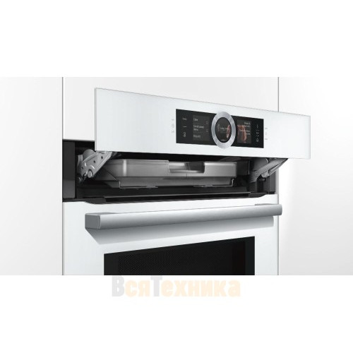 Духовой шкаф Bosch HNG6764W6 — это модель с микроволнами и паром, выполненная в белом цвете