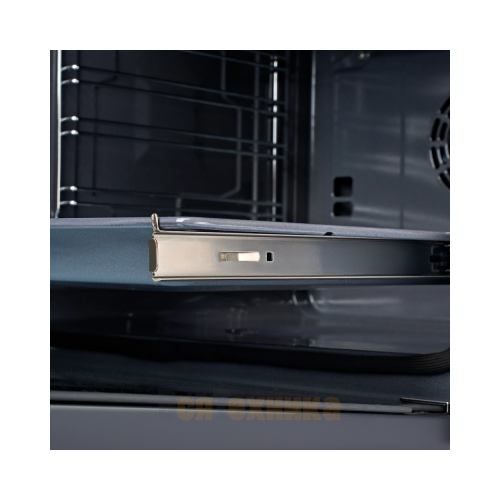 Духовка имеет защитное отключение, охлаждаемый корпус и дверцу с двойным стеклом, которая остается безопасной на ощупь во время работы. Полноразмерная телескопическая направляющая позволяет легко и плавно загружать даже тяжелые блюда.