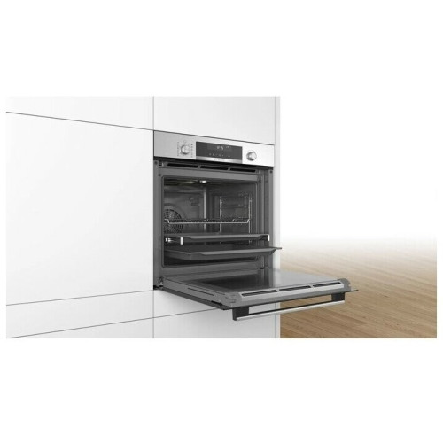 Артикул: 1-008-110 Встраиваемый электрический духовой шкаф Bosch HBG 5780S6 Тенденции и советы в вашем приложении Вам нравится пробовать что-то новое на кухне, но у вас нет времени читать книги или ходить на курсы? Приложение Home Connect обеспечивает легкий и быстрый доступ к рецептам и методам приготовления пищи с вашего смартфона или планшета. Оттачивайте свои кулинарные навыки и удивляйте всех своими новыми блюдами! Управляйте своей духовкой с мобильного устройства В духовке Home Connect вы можете предварительно разогреть духовку, приготовить рецепт или узнать, когда приготовление будет готово. Вы будете получать персонализированные оповещения и уведомления, чтобы узнать все о своей духовке. Кроме того, при возникновении любых проблем удаленная диагностика может быть проведена в тот же момент. ЖК-дисплей: дизайн и простота в обращении ЖК-дисплей с белым светом и скрытыми ручками управления: простое управление духовкой и прямой доступ ко всей необходимой информации, такой как дополнительные функции, индикация температуры. Изысканные рецепты, предварительно запрограммированные рецепты Рецепты для гурманов: до 30 предварительно запрограммированных рецептов. Выбирайте только тип корма и его вес и наслаждайтесь идеальными результатами. Пиролиз: печь, которая очищается сама по себе Пиролитическая самоочистка: выберите один из 3 уровней интенсивности в зависимости от степени загрязнения салона и забудьте об этом.
