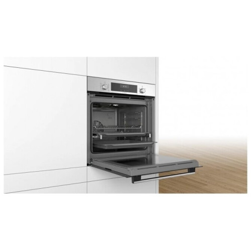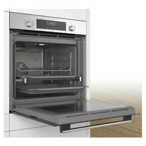 Электрический духовой шкаф Bosch HBG5370S0 станет идеальным выбором для людей, которые любят готовить. С его помощью можно создать множество кулинарных шедевров. У этого духового шкафа есть ряд преимуществ. Вот некоторые из них: модель встраиваемая, поэтому занимает мало места; достаточно большой по размерам; эстетично выглядит, уместно впишется в любой интерьер; абсолютно безопасен, предусмотрена блокировка от детей; имеет 9 программ приготовления, среди которых «Большой гриль», «Верхний + нижний нагрев», «Верхний + нижний нагрев + конвекция», «Гриль», «Конвекция», «Верхний нагрев», «Нижний нагрев»; есть таймер с отключением, утапливаемые ручки и телескопические направляющие.