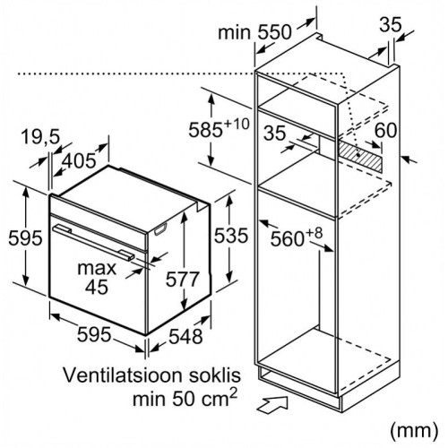 Объем духовки, л 71