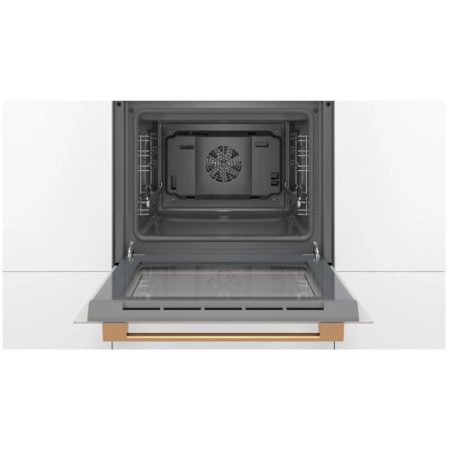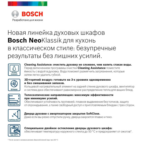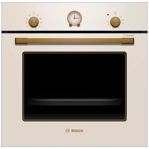 Электрический духовой шкаф Bosch NeoKlassik Serie 6 HBJN10YW0R – элегантная модель, которая станет заметной частью интерьера в классическом стиле. На светлом корпусе эффектно выделяется фурнитура цвета латуни, аналоговые часы привлекают внимание.удобный И вместительныйретро-дизайн скрывает современный прибор с самыми широкими возможностями. Кроме традиционных комбинаций верхнего и нижнего нагревательных элементов, есть Vario-гриль большой площади и специальный режим для пиццы. «3D-горячий воздух» обеспечит равномерное распределение тепла и позволит использовать сразу несколько уровней одновременно.