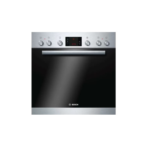 Bosch HEA23B150 оптимален для установки встраиваемым способом в специальную нишу в мебели. Духовой шкаф имеет откидную дверцу со вставкой из термостойкого стекла, через которое можно наблюдать за процессом приготовления пищи. Для удобства есть возможность активировать подсветку. Функция гриля оптимальна для получения румяной корочки пирога и других блюд из мяса или птицы. Поверхность духового шкафа и варочной панели необходимо очищать посредством специального неабразивного моющего средства, используя губку или салфетку из мягкой ткани.