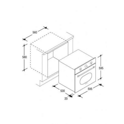 Общие данные: Габариты: 59.5х59.5х55 см Габариты ниши для встраивания: 58х56х56 см Объем: 53 л Вертел: нет Гриль: есть Конвекция: есть Таймер: есть Подсветка духовки: есть Самоочистка: эмаль Количество режимов работы: 5 Принадлежности: 2 решетки, противень глубиной 30 мм Режимы работы: Освещение Верхний + нижний нагрев Традиционный гриль с закрытой дверцей Гриль с конвекцией с закрытой дверцей Нижний и верхний нагрев с конвекцией Управление: Ручки управления: поворотные Дисплей: аналоговый Программатор: аналоговый Таймер: аналоговый Часы Звуковой таймер Безопасность: Тангенциальное охлаждение Количество стекол в дверце: 2 Дополнительная информация: Гриль с термостатом и конвекцией Защита гриля Освещение: лампа накаливания Максимальная потребляемая мощность: 2.1 кВт Класс энергоэффективности: A