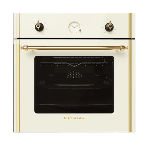 Встраиваемый электрический духовой шкаф Electronicsdeluxe 6006.05 эшв-001, выполненный в цвете топленое молоко, станет элегантным и функциональным дополнением любой современной кухни. Модель имеет 6 режимов приготовления, существует возможность установки механического таймера. Управление осуществляется с помощью поворотных переключателей,  выполненных в классическом стиле. Комплектация: * Большой противень * Малый противень * Решётка для жарки