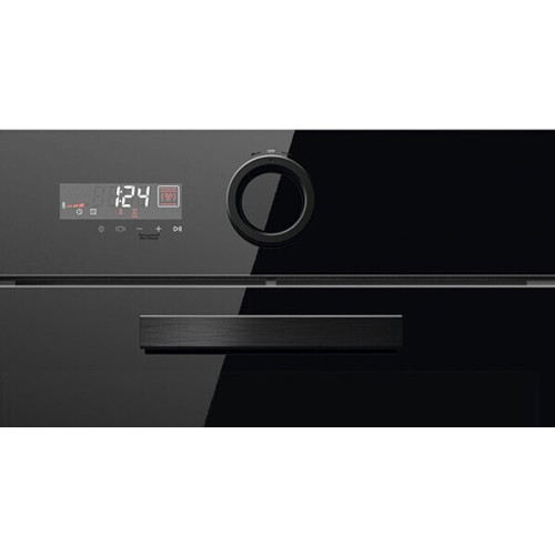 Встраиваемый электрический духовой шкаф Elica Virtus снабжен дисплеем и поворотным переключателем. На дисплее отображаются: температура, выбранная программа, текущее время и настройки таймера. Доступна блокировка управления. Стеклянная фронтальная панель выполнена с нанесением покрытия против следов от отпечатков пальцев. Прибор обладает камерой объемом 65 л с покрытием Easy Clean. Очистка гидролизная. Мультифункциональный духовой шкаф позволяет настроить температуру нагрева в широком диапазоне от 30°С до 320°С с шагом всего 1°С. Низкие температуры позволяют готовить блюда по технологии су-вид. Встроено 16 режимов работы. Среди них — «Конвекция», «Эко», «Двухсторонний нагрев», «Размораживание» и другие. ТЭНовый гриль обеспечивает блюдам хрустящую корочку. Предусмотрена функция контроля влаги в камере. Жаропрочная дверца открывается вниз посредством ручки и оборудована трехслойным стеклом. Внутреннее стекло съемное, оно не дает теплу выйти наружу и оставляет дверцу холодной. Для плавного закрывания двери предусмотрен доводчик. Для внутреннего освещения установлена галогеновая лампа. Доступна многоуровневая загрузка на металлических направляющих.
