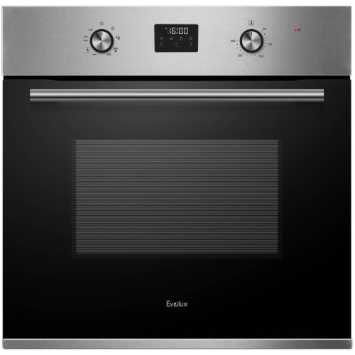 Современный дизайн Сочетание стекла, стали и прямых, горизонтальных линий, используемых в духовых шкафах современного дизайна объединяет внешний вид кухонной мебели и бытовой техники, создавая полноценное решение в стиле хай-тек. Система автоматического охлаждения Специальный тангенциальный вентилятор установлен во всех духовых шкафах Evelux и служит для предотвращения излишнего нагрева корпуса духовки, продлевая срок службы как самой духовки, так и Вашей мебели. Автоматическое отключение Специальный защитный элемент автоматически отключает духовой шкаф в случае, если пользователь забыл это сделать сам. Время экстренного отключения зависит от ранее выбранной температуры. Можно быть полностью уверенным в безопасности для мебели. 8 режимов нагрева Восемь режимов нагрева, включающие работу классических нагревательных элементов, кольцевого нагревателя в сочетании с конвектором, позволяют готовить самые сложные и необычные блюда. Электронный таймер Электронный таймер поможет установить время продолжительности приготовления, после которого духовой шкаф остановит свою работу, а также установить время отложенного старта, который включит духовой шкаф в необходимый момент и самостоятельно отключит его по истечению времени. Электронный таймер позволяет устанавливать акустический сигнал, который подается по истечению заданного времени даже, если духовой шкаф не находится в режиме приготовления.