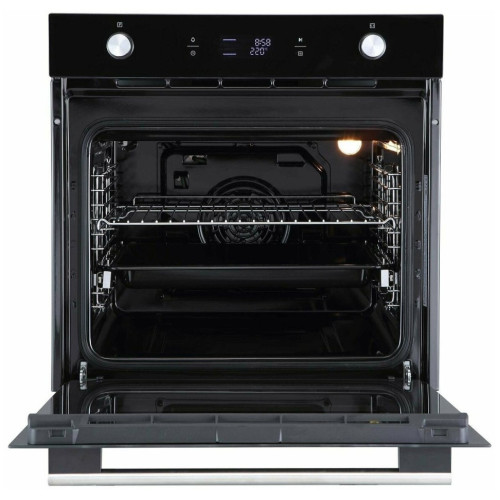 Встраиваемый электрический духовой шкаф Evelux EO 650 PB Общие данные: Габариты: 59.5х59.5х57.5 см Габариты ниши для встраивания: 57х56-60.6х60 см Объем общий: 70 л Вертел: нет Гриль: да Конвекция: да Таймер: да Подсветка духовки: есть, 1 х 25 Вт Количество режимов работы: 9 Самоочистка: эмаль легкой очистки, гидролизная Режимы: Верхний и нижний нагрев с конвекцией Верхний и нижний нагревательный элементы Гриль Двойной гриль с конвекцией Двойной гриль: гриль с верхним нагревом Кольцевой нагревательный элемент с конвекцией Нижний нагрев Освещение духовки Размораживание Управление и функции: Большой LED дисплей белого цвета Управление: Электронное + сенсорное Таймер: 9 часов, электронный Тип переключателей: Поворотные, утапливаемые переключатели Безопасность: Количество стекол дверцы: 3 Защитное отключение Охлаждающий вентилятор Оснащение: Решетка-гриль Универсальный противень Дополнительная информация: Фронтальная поверхность: Стекло Телескопические направляющие: Одноуровневые Направляющие противней: Хромированные решетки Внутренняя поверхность дверцы Full Glass Легкосъемные стекла Easy Click Класс энергопотребления: A Мощность подключения (Вт): 3000 Длина шнура питания (м): 1 Температурный диапазон, °C: 50-250 Вес: 31.98 кг