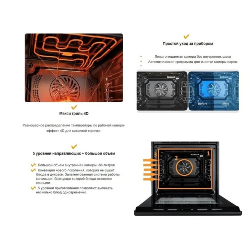| Особенности конструкции | вертел, дисплей, подсветка камеры, телескопические направляющие, термощуп, часы |