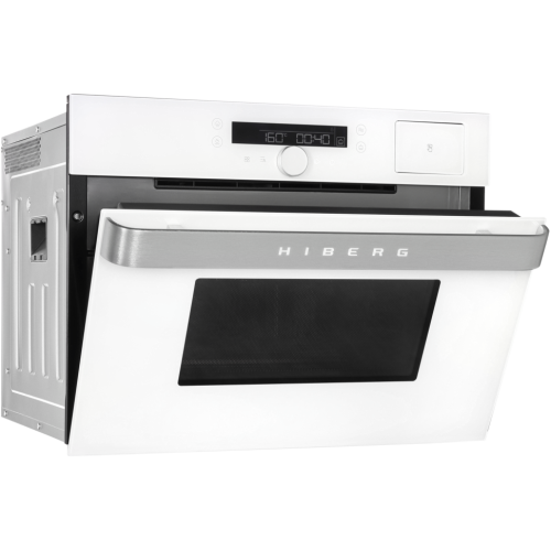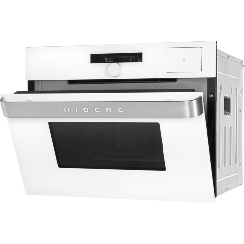 Описание Встраиваемый духовой шкаф HIBERG MS-VM 5115 W SMART с функцией готовки на пару, грилем, разогревом блюд с помощью микроволн, сенсорной панелью с запрограммированными рецептами — это уникальное устройство, созданное для комфортного приготовления и настоящих кулинарных шедевров! Стеклянный фасад духового шкафа белого цвета в сочетании с большой LED-панелью подчеркивает эксклюзивность модели. Духовой шкаф объемом 31 литр идеально подходит для встраивания в гарнитур в небольшом кухонном пространстве. Максимальная мощность 2000 Вт обеспечивает быстрый нагрев и позволяет достичь желаемой температуры для приготовления блюд. Внутренние боковые стенки камеры выполнены из нержавеющей стали, а дно — из стеклокерамики. Лаконичная сенсорная панель управления с большим LED-дисплеем обеспечивает понятное и комфортное пользование всеми режимами и функциями модели. Сенсорные кнопки и регулятор позволяют легко настроить все параметры приготовления и воспользоваться дополнительными функциями. Система рецептов в АВТОМЕНЮ избавляет от необходимости угадывать, какую температуру и время приготовления установить: просто выберите необходимый рецепт на дисплее. Режимы и функции Духовой шкаф, объединяющий в себе функции пароварки и СВЧ, поддерживает 7 режимов работы, имеет 7 дополнительных функций и 51 программу с предустановленными настройками, которые позволяют приготовить все, что только пожелаете. Диапазон рабочих температур в духовом шкафу: 38–230 °C. Приготовление на пару Это прекрасная возможность получить вкусную и полезную еду — рыбу, мясо, паровые котлеты из курицы или индейки, гарниры и овощи — без использования масла. Для этого нужно добавить воду в специальный резервуар до максимальной отметки и выставить необходимый режим приготовления на пару. Кроме пользы для здоровья, варка на пару экономит время, так как блюдо никогда не пригорит и готовится равномерно. Любая выпечка, приготовленная с помощью пара, получается просто изумительной. Мясо, рыба и овощи идеально пропекаются со всех сторон и приобретают золотистую хрустящую корочку, оставаясь сочными внутри и сохраняя все полезные свойства. Добавление пара к другим вариантам нагрева позволяет сделать блюда более сочными и ароматными, а также избежать их пересушивания. Микроволны Благодаря режиму «Микроволны» можно быстро и легко разогреть любимые блюда прямо в духовом шкафу. Устройство, объединяющее в себе функции микроволновой печи и духовки, экономит пространство на кухне. Режим «Микроволны» может использоваться как отдельная программа для разогревания блюд, так и совместно с другими режимами нагрева: пар и микроволны, гриль и микроволны. Это позволяет готовить широкий спектр блюд — от простых закусок до сложных десертов — и все с помощью одного устройства. Режим «Гриль» В этом режиме благодаря мощному нагревательному элементу сверху получается сочное, с румяной корочкой мясо, запеченные овощи, пицца, хрустящие картофельные дольки, птица или рыба с золотистой корочкой. При одновременной работе пара и гриля в духовом шкафу создается вихревой поток горячего воздуха, что обеспечивает равномерную прожарку. Блюда получаются нежными внутри и хрустящими снаружи. Режим «Тушение» Главное преимущество режима — сохранение всех полезных свойств и витаминов в продуктах, чт