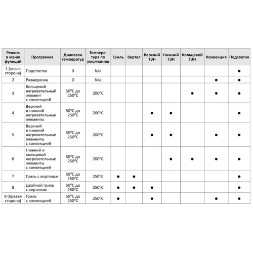 | Функция СВЧ | нет |