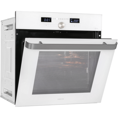 Описание Встраиваемый духовой шкаф HIBERG VM 6193 W с общим объемом 73 л имеет 9 режимов приготовления, функцию конвекции, электронное управление с дисплеем. Стильная и современная модель духового шкафа HIBERG выполнена в классическом белом цвете, идеально подойдет в интерьер кухни в стиле «минимализм», «хай-тек», «лофт» и «модерн». Равномерное распределение жара по всему пространству духовки вместе с постоянно циркулирующим горячим воздухом позволит получить сочное, нежное и прожаренное внутри блюдо с хрустящей корочкой. Это возможно с помощью кольцевого нагревательного элемента и функции конвекции. Благодаря 9 режимам, можно выбрать наиболее оптимальный для приготовления любого блюда или экспериментировать, меняя режимы работы. Духовой шкаф прекрасно подходит для запекания мяса, овощей, лазаньи, жульена, нежных суфле и выпечки воздушных бисквитов. Функции и управление: - диапазон рабочих температур в духовом шкафу от 50°C до 250°C; - верхний и нижний нагрев с конвекцией обеспечивают равномерное пропекание блюд с  корочкой снизу и сверху; - конвекционная разморозка – процесс размораживания занимает мало времени и осуществляется равномерно. Размораживание в духовке сохраняет все полезные и вкусовые качества продуктов; - с функцией «Гриль» мясо, птица или овощи приобретут аппетитную румяную корочку, оставаясь сочными и нежными внутри. Вертел для гриля обеспечит равномерную прожарку со всех сторон за счет постоянного вращения; - функция «Аэрофритюр» подходит для быстрого и полезного приготовления блюд. С данной функцией приготовление осуществляется в специальном сетчатом противне без использования масла, поэтому блюда имеют пониженную калорийность и сохраняют свои полезные свойства; - с помощью таймера-программатора духовой шкаф может работать в полуавтоматическом и полностью автоматическом режимах. Таймер обратного отсчета устанавливается не только на окончание готовки, также можно запрограммировать время начала работы духовки с заранее заданным режимом приготовления и температурой. Максимальное время отсрочки 23 ч. 59 минут. По истечении времени таймер оповестит звуковым сигналом. Духовой шкаф имеет 2 типа управления – механическое и электронное. Механический поворотный регулятор позволяет выбрать необходимый режим приготовления. Если необходимо изменить параметры режима готовки или выставить таймер, это можно сделать с помощью сенсорных кнопок. Благодаря символам со световой индикацией на двух дисплеях удобно выбирать нужные режимы и функции, отслеживать время и регулировать температуру. Внутреннее оснащение: - доводчик двери обеспечивает тихое, плавное и плотное закрытие, не требуя никаких усилий для пользователя; - система охлаждения дверцы духовки не допускает перегрева корпуса духового шкафа, а также защищает мебель, не дает ей перегреться или деформироваться; - дверца из тройного съемного закаленного стекла безопасна для взрослых и детей, так как не нагревается при приготовлении. Съемное стекло дверцы духовки удобно в уходе; - яркое внутреннее освещение позволяет видеть готовящееся блюдо и контролировать степень его готовности, не открывая дверцу духовки; - внутри духовой шкаф покрыт специальной легко очищающейся эмалью белого цвета и оборудован каталитическими панелями, которые расщепляют жир и загр