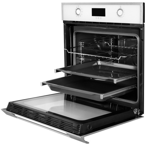 СТЕКЛЯННЫЙ ФАСАД Фасад выполнен полностью из закаленного стекла. Основные преимущества стеклянного фасада это долговечность и легкий уход. Закаленное стекло прочный и надежный материал, устойчивый к царапинам и обладающий высокой степенью безопасности, так как при разрушении закаленное стекло разбивается на мелкие фрагменты, а не на режущие осколки. Уход за чистотой прост, своевременно протирать влажной салфеткой будет достаточно, чтобы поддерживать идеальный внешний вид вашего духового шкафа. ОХЛАЖДЕНИЕ ДВЕРЦЫ ДУХОВКИ 3 СТЕКЛА Первое внутренние стекло атермальное, возвращает часть тепла обратно в камеру духовки, что ускоряет процесс набора заданной температуры, а также благоприятно влияет на процесс приготовления. Второе стекло установлено между атермальным и фасадным стеклом, способствует раздельному циркулированию потоков воздуха вентиляции дверцы. Вся конструкция легко разбирается без дополнительных инструментов, позволяет проводить очистку каждого стекла отдельно. РАЗМОРОЗКА Функция разморозки быстро и эффективно подготовит продукт к готовке. Вам больше не понадобится размораживать продукты в комнатной температуре или холодильнике. БЫСТРЫЙ НАГРЕВ Функция быстрого нагрева, сокращает время необходимое для поднятия температуры до нужного уровня. Каждый раз используя духовой шкаф вы будете экономить свое время избегая долго ожидания прогрева камеры духовки. ТУРБО РЕЖИМ Приготовление на нескольких уровнях, это особенность турбо режима предназначенная для равномерного нагрева всего объема духовки. Вам не нужно думать где лежит ваше блюдо, интенсивность температуры одинаковая во всей камере и готовка идет с равномерным нагревом. КАМЕРА 70 ЛИТРОВ Камера духовки объемом 70 литров позволит разместить как большие блюда целиком, так и готовить много маленьких на разных уровнях. Камера духовки бесшовная, не имеет стыков, в которых может скапливаться грязь и затруднять процесс очистки камеры. СЪЕМНАЯ И ПОЛНОСТЬЮ РАЗБОРНАЯ ДВЕРЬ Если вы решили провести полную чистку духовки, вы сможете легко снять дверь, снять с нее стекла и промыть все уголки и закрытые места. Потом вы, с той же легкостью, сможете ее собрать и установить обратно, без специальных инструментов. ДОВОДЧИК ДВЕРИ HI-TECH В духовку установлены современные и надежные петли с доводчиком. Доводчик двери обеспечивает плавное и безопасное закрытие. До закрытие двери происходит автоматически, что гарантирует избежание ударов и повреждений при не аккуратном или сильном закрытие и это также продлевает срок службы духовки. КОМПЛЕКТ ПРОТИВНЕЙ В комплекте с духовкой идут два противня с покрытием ProCook, стандартный и глубокий, а также решетка. Глубокий противень имеет сток для жира, повышающий эффективность готовки блюд с высоким жировыделением. Решетка имеет универсальную форму, может быть установлена как отдельно, так и внутри глубокого противня, имеет защитное ребро фиксирующие расположения блюда с внутренней стенки и ножки для удобного расположения на столе. ПАРОВАЯ ОЧИСТКА Для облегчения ухода за чистотой камеры духовки, вы можете воспользоваться функцией очистки паром. Налив в противень воду и запустив режим, вода испаряясь будет образовывать пар, который размягчит жир и грязь осевшие внутри камеры духовки. После завершения, процесс уборки исключит 