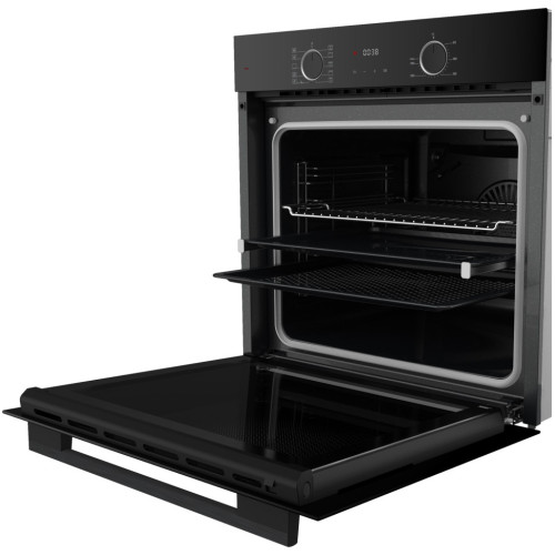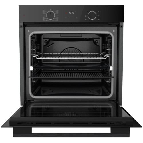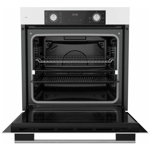 тип духовки: электрическая, установка: независимая, ширина: 59.50 см, конвекция, гриль, тип гриля: электрический, очистка духовки: гидролизная, объем духовки: 80 л, количество стекол дверцы духовки: два, переключатели: поворотные, класс энергопотребления: A, особенности конструкции: дисплей, подсветка камеры, телескопические направляющие, эмаль легкой чистки, дополнительные функции: быстрый нагрев, размораживание, таймер, высота: 59.50 см