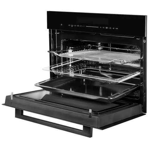 Духовой шкаф электрический Kuppersberg KMW 694 с функцией СВЧ может использоваться, как микроволновая печь. В отличие от обычной микроволновки, в данном приборе свч-излучение можно комбинировать с другими режимами готовки: конвекцией, грилем и разморозкой. Сенсорное управление позволит легким движением пальца регулировать необходимые настройки. Для облегчения ухода за чистотой камеры духовки, предусмотрена удобная и простая функция очистки паром. Ключевые особенности: Функция СВЧ Эмаль легкой очистки Crystal Clean Сенсорный дисплей