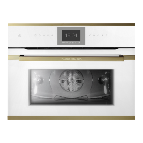 Компактный духовой шкаф с паром Kuppersbusch CBD 6550.0 Объем: 43 литра TFT-дисплей шириной 3,9" с текстовым и графическим полями 14 режимов духового шкафа 8 специальных режимов 6 режимов приготовления на пару 9 специальных режимов приготовления на пару Более 40 автоматических программ 20 избранных программ для сохранения индивидуальных настроек Электронная система управления с сенсорными кнопками Отображение фактической температуры и рекомендуемой Электронный таймер (продолжительность программы, окончание, таймер обратного отсчета) с белыми индикаторами Съемная дверца с полностью стеклянной внутренней поверхностью Четырехслойное остекление дверцы Быстрый разогрев Экономичный режим Демо-режим Режим ожидания Галогенная подсветка Контактный дверной выключатель Катализатор Okoterm очищает воздух во время приготовления, таким образом стенки духового шкафа всегда абсолютно чистые! В отличие от энергоёмкой технологии пиролиза (разрушение частиц грязи путём дожигания) при температуре около 500°С, okotherm® не требует дополнительного времени и дополнительных затрат электроэнергии. Режимы работы Верхний и нижний нагрев Подача тепла сверху и снизу обеспечивает равномерное приготовление продуктов, расположенных на одном уровне. Прекрасно подходит для выпечки пирожных и пирогов, например, изделий из дрожжевого теста, чизкейков и т. д. Обдув горячим воздухом с Ökotherm Вентилятор распределяет тепло, генерируемое кольцевым нагревательным элементом, который расположен на задней стенке рабочей камеры. Обеспечиваемая таким образом одинаковая температура по всему объему рабочей камеры гарантирует равномерное приготовление блюд на всех уровнях направляющих, не ухудшая их вкус и запах Верхний и нижний нагрев с обдувом горячим воздухом Тепло, генерируемое верхним и нижним нагревательными элементами, равномерно распределяется по объему рабочей камеры с помощью вентилятора. Прекрасно подходит для выпечки и жарения Режим "пицца" с Ökotherm Сочетание нижнего нагрева и обдува горячим воздухом оптимально подходит для приготовления изделий в виде хрустящей основы с мягкой начинкой. Идеально для пиццы, печенья или выпечки с начинкой из фруктов и паштетов Нижний нагрев Благодаря теплу, генерируемому только нижним нагревательным элементом, данный режим прекрасно подходит для приготовления изделий с хрустящей основой или для получения более коричневой корочки снизу. Прекрасно подходит для приготовления очень мягких фруктовых пирогов и для легкого запекания тестовой основы пирогов перед приготовлением Верхний нагрев Тепло, генерируемое верхним нагревательным элементом, прекрасно подходит для запекания и подрумянивания блюд ECO Режим ECO позволяет уменьшить энергопотребление при приготовлении блюд. Для снижения потребления электроэнергии, духовой шкаф автоматически отключается за несколько минут до окончания приготовления блюда, используя тепло, остающееся в рабочей камере, для доведения блюда до готовности Интенсивный обдув горячим воздухом с Ökotherm Включенный верхний нагревательный элемент, помимо обдува горячим воздухом, используется для создания хрустящей корочки и подрумянивания блюда. Прекрасно подходит для приготовления запеченного картофеля, жарения или запекания Гриль + нижний нагрев Тепло от нижнего нагревательного элемента и расп
