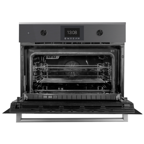 Компактный духовой шкаф с микроволнами Kuppersbusch TFT-дисплей шириной 3,9“ с текстовым и графическим полями 10 режимов духового шкафа 2 режима микроволн (в сочетании с другими режимами) 10 уровней мощности микроволн Мощность микроволн: 1000 Вт Инверторная технология Функция быстрого старта 10 автоматических программ ökotherm®-катализатор духового шкафа Электронная система управления с высококачественными алюминиевыми поворотными переключателями Отображение фактической температуры и рекомендуемой Электронный таймер (продолжительность программы, окончание, таймер обратного отсчета) с белыми индикаторами Трехслойное остекление дверцы Быстрый разогрев Демо-режим Галогенная подсветка Контактный дверной выключатель Объем: 43 л Катализатор Okoterm очищает воздух во время приготовления, таким образом стенки духового шкафа всегда абсолютно чистые! В отличие от энергоёмкой технологии пиролиза (разрушение частиц грязи путём дожигания) при температуре около 500°С, okotherm® не требует дополнительного времени и дополнительных затрат электроэнергии. Режимы работы Верхний и нижний нагрев Подача тепла сверху и снизу обеспечивает равномерное приготовление продуктов, расположенных на одном уровне. Прекрасно подходит для выпечки пирожных и пирогов, например, изделий из дрожжевого теста, чизкейков и т. д. Нижний нагрев Благодаря теплу, генерируемому только нижним нагревательным элементом, данный режим прекрасно подходит для приготовления изделий с хрустящей основой или для получения более коричневой корочки снизу. Прекрасно подходит для приготовления очень мягких фруктовых пирогов и для легкого запекания тестовой основы пирогов перед приготовлением Верхний нагрев Тепло, генерируемое верхним нагревательным элементом, прекрасно подходит для запекания и подрумянивания блюд Обдув горячим воздухом с Ökotherm Вентилятор распределяет тепло, генерируемое кольцевым нагревательным элементом, который расположен на задней стенке рабочей камеры. Обеспечиваемая таким образом одинаковая температура по всему объему рабочей камеры гарантирует равномерное приготовление блюд на всех уровнях направляющих, не ухудшая их вкус и запах ECO Режим ECO позволяет уменьшить энергопотребление при приготовлении блюд. Для снижения потребления электроэнергии, духовой шкаф автоматически отключается за несколько минут до окончания приготовления блюда, используя тепло, остающееся в рабочей камере, для доведения блюда до готовности Интенсивный обдув горячим воздухом с Ökotherm Включенный верхний нагревательный элемент, помимо обдува горячим воздухом, используется для создания хрустящей корочки и подрумянивания блюда. Прекрасно подходит для приготовления запеченного картофеля, жарения или запекания Режим "пицца" с Ökotherm Сочетание нижнего нагрева и обдува горячим воздухом оптимально подходит для приготовления изделий в виде хрустящей основы с мягкой начинкой. Идеально для пиццы, печенья или выпечки с начинкой из фруктов и паштетов Гриль большой площади Прекрасно подходит для приготовления больших кусков мяса или рыбы. Этот режим также позволяет подрумянивать блюда с большой площадью поверхности. Кроме того, благодаря повышенной мощности быстрее образуется румяная корочка Гриль Подрумянивание и запекание. Гриль малой площади позволяет уменьшить энергопотреблен