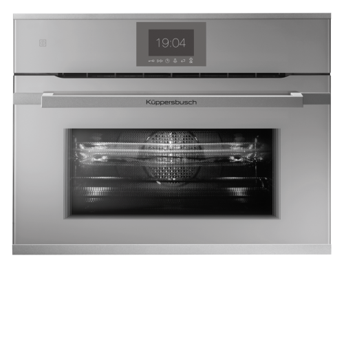 Компактный духовой шкаф с микроволнами Kuppersbusch TFT-дисплей шириной 3,9“ с текстовым и графическим полями 14 режимов духового шкафа 8 специальных режимов 2 режима микроволн (в сочетании с другими режимами) 10 уровней мощности микроволн Мощность микроволн: 1000 Вт Инверторная технология Функция быстрого старта Более 40 автоматических программ 20 избранных программ для сохранения индивидуальных настроек Плавное открывание и закрывание дверцы ökotherm®-катализатор духового шкафа Электронная система управления с помощью сенсорных кнопок с задней подсветкой Отображение фактической температуры и рекомендуемой Электронный таймер (продолжительность программы, окончание, таймер обратного отсчета) с белыми индикаторами Трехслойное остекление дверцы Быстрый разогрев Экономичный режим Демо-режим Режим ожидания Галогенная подсветка Контактный дверной выключатель Объем: 43 л Катализатор Okoterm очищает воздух во время приготовления, таким образом стенки духового шкафа всегда абсолютно чистые! В отличие от энергоёмкой технологии пиролиза (разрушение частиц грязи путём дожигания) при температуре около 500°С, okotherm® не требует дополнительного времени и дополнительных затрат электроэнергии. Режимы работы Верхний и нижний нагрев Подача тепла сверху и снизу обеспечивает равномерное приготовление продуктов, расположенных на одном уровне. Прекрасно подходит для выпечки пирожных и пирогов, например, изделий из дрожжевого теста, чизкейков и т. д. Обдув горячим воздухом с Ökotherm Вентилятор распределяет тепло, генерируемое кольцевым нагревательным элементом, который расположен на задней стенке рабочей камеры. Обеспечиваемая таким образом одинаковая температура по всему объему рабочей камеры гарантирует равномерное приготовление блюд на всех уровнях направляющих, не ухудшая их вкус и запах Верхний и нижний нагрев с обдувом горячим воздухом Тепло, генерируемое верхним и нижним нагревательными элементами, равномерно распределяется по объему рабочей камеры с помощью вентилятора. Прекрасно подходит для выпечки и жарения Режим "пицца" с Ökotherm Сочетание нижнего нагрева и обдува горячим воздухом оптимально подходит для приготовления изделий в виде хрустящей основы с мягкой начинкой. Идеально для пиццы, печенья или выпечки с начинкой из фруктов и паштетов Нижний нагрев Благодаря теплу, генерируемому только нижним нагревательным элементом, данный режим прекрасно подходит для приготовления изделий с хрустящей основой или для получения более коричневой корочки снизу. Прекрасно подходит для приготовления очень мягких фруктовых пирогов и для легкого запекания тестовой основы пирогов перед приготовлением Верхний нагрев Тепло, генерируемое верхним нагревательным элементом, прекрасно подходит для запекания и подрумянивания блюд ECO Режим ECO позволяет уменьшить энергопотребление при приготовлении блюд. Для снижения потребления электроэнергии, духовой шкаф автоматически отключается за несколько минут до окончания приготовления блюда, используя тепло, остающееся в рабочей камере, для доведения блюда до готовности Интенсивный обдув горячим воздухом с Ökotherm Включенный верхний нагревательный элемент, помимо обдува горячим воздухом, используется для создания хрустящей корочки и подрумянивания блюда. Прекрасно подходит для приготовления запечен