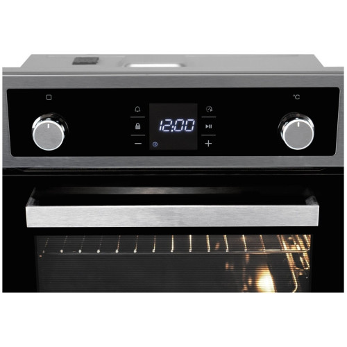 Настолько же стильно, насколько практично и мощно. Любимые блюда нежные внутри и хрустящие снаружи. В электрической модели сочетаются изысканный черный и цвет нержавеющей стали, функциональные детали, безопасность и простота использования. Печь хрустящий, ароматный хлеб, пиццу, торты, запекать рыбу, индейку, горячие закуски с сыром, - для этого производитель предусмотрел 9 режимов. Хозяйки оценят верхний и нижний нагревы, а также турбо гриль которые можно использовать одновременно с конвекцией. Это позволяет духовке нагреваться быстрее, что экономит время, энергию, гарантируя идеально равномерное приготовление блюд на всех трех уровнях. Благодаря режиму рециркуляции горячий воздух равномерно распределяется по камере. Энергоэффективность и безопасность обеспечиваются за счет тройного остекления. ?Техника оснащена хромированными утапливаемыми ручками и удобным сенсорным управлением. Эмаль легкой очистки, съемная дверца духовки, возможность без труда извлечь стекло упрощают уборку внутренних поверхностей. LED таймер, часы позволяют точно контролировать время приготовления.