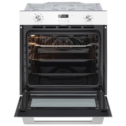 Код товара: 633815 Духовка - электрическая независимая; Объём - 72 л; Энергопотребление - класс A, мощность подключения 2.90 кВт; Размеры (ВхШхГ) - 59.5 х 59.5 x 56.5 см; Максимальная температура - 250 °С; Режимов нагрева - 9; Режимы нагрева - нижний нагрев, верхний нагрев + нижний нагрев, конвекция, гриль + конвекция, большой гриль, малый гриль; Гриль - есть, электрический, 1200 Вт; Конвекция - есть; Размораживание - есть; Переключатели - поворотные, утапливаемые; Тип поворотных переключателей - тактовые; Таймер - есть; Дисплей - есть; Вертел - нет; Дверца духовки - откидная; Телескопические направляющие - есть; Число стекол дверцы - три; Другие функции и особенности - подсветка камеры, вентилятор охлаждения; Часы - есть, электронные; Цвет корпуса - белый; Комплектация - полка-решетка, глубокий противень, противень для запекания, телескопическая полка; Дополнительная информация - шнур питания с вилкой: 1.5 м;