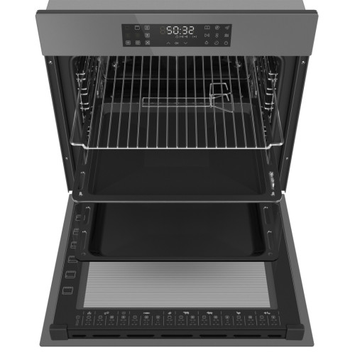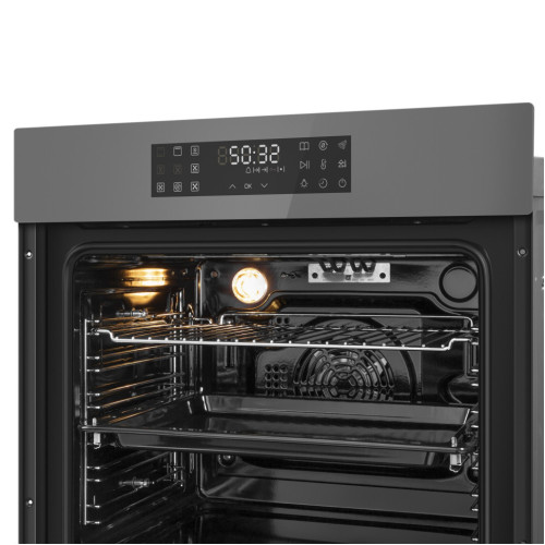 Стильный электрический встраиваемый духовой шкаф обладает большой вместительностью и новейшими функциональными возможностями для достижения лучших результатов в приготовлении блюд. Объем 76 л при стандартных размерах позволяет готовить одновременно несколько блюд, разместив решетку или противень на удобном уровне. Большой цифровой дисплей отображает всю необходимую информацию о времени, режиме и температуре приготовлении. Два стекла в сочетании с вентилятором охлаждения делают процесс приготовления безопасным. Мощное внутреннее освещение позволяет контролировать весь процесс приготовления не открывая дверцу. Эмаль легкой очистки - специальное покрытие внутренней камеры, которое позволит без труда отмыть стенки духового шкафа. Таймер со звуковым оповещением позволит установить продолжительность приготовления. По истечении заданного времени прибор самостоятельно отключается, исключая вероятность испортить блюдо.