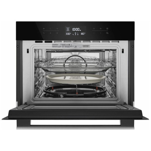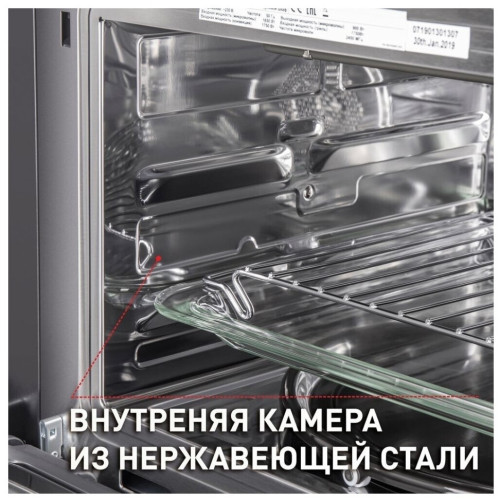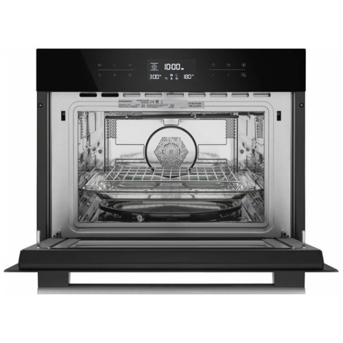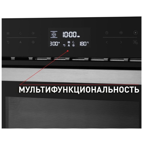 Стильный электрический встраиваемый духовой шкаф с функцией СВЧ объемом 44 л и шириной 60 см. Внутренняя камера выполнена из нержавеющей стали. Дверца духового шкафа состоит из 2-х жаропрочных стекол, что создает холодный фронт и делает процесс приготовления безопасным, исключая возможность ожога при касании. Панорамное стекло SMART EYE и мощное внутреннее освещение позволяет контролировать весь процесс приготовления не открывая дверцу. Фронтальная панель сделана из высококачественного жаропрочного стекла черного цвета. Цельнометаллическая ручка дверцы из матированной нержавеющей стали лаконично поддерживает общий стиль и не нагревается во время готовки. Сенсорное управление с дисплеем COLD WHITE позволит выбрать режим работы, температуру (50°-230°C), установить таймер и блокировку от детей.