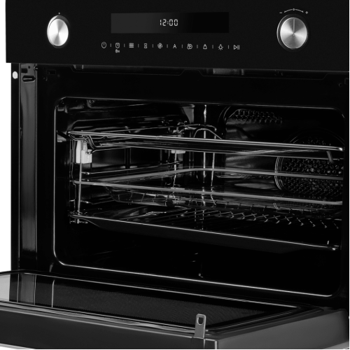 Описание Объем 50 литров дает уверенность в том, что несмотря на компактные размеры этого духового шкафа, вы сможете приготовить в нем сразу необходимый объем пищи, порадовав себя и своих близких изысканными блюдами. Внутренняя камера покрыта эмалью легкой очистки. Дверца изготовлена по технологии "Холодный фронт". Пользователь может активировать 15 режимов нагрева и функций, среди которых: двойной гриль - внутренний двойной гриль и внешний верхний элемент работают одновременно, давая быстрый и равномерный нагрев для образования румяной корочки конвекция обеспечивает равномерное распределение тепла с помощью вентилятора.Тепло распределяется одновременно во всех направлениях, что обеспечивает равномерное пропекание блюд и хрустящую корочку, сокращая время приготовления. эко-конвекция - режим оптимизирует процесс приготовления пищи при наибольшей энергоэффективности, снижая потребление энергии. пицца - пицца отлично готовится с экстра-нагревом как снизу, так и с боков духовки, гарантируя, что основа пиццы будет хрустящей размораживание - циркуляция воздуха при комнатной температуре позволяет быстрее оттаивать замороженным продуктам (без использования какого-либо тепла) приготовление теста - эта функция обеспечивает теплую среду, идеально подходящую для приготовления дрожжевого теста, одновременно улучшая текстуру и качество кондитерских изделий, таких, как торты и хлеб. функция предварительный нагрев — для быстрого достижения нужной температуры Управление LED дисплеем и поворотными ручками PUSH PULL: простота в использовании благодаря прямому доступу к дополнительным функциям и рекомендации по температуре позволит выбрать режим работы. Панорамное стекло и мощное внутреннее освещение позволяет контролировать весь процесс приготовления не открывая дверцу. Фронтальная панель сделана из высококачественного жаропрочного стекла . Цельнометаллическая ручка дверцы из матированной нержавеющей стали лаконично поддерживает общий стиль и не нагревается во время готовки. Защита от детей - эффективная защита от незапланированной активации устройства, в результате случайного нажатия во время уборки или попытки включения прибора детьми. Таймер приготовления - по истечении установленного времени, духовка автоматически отключится Объем 50 литров дает уверенность в том, что несмотря на компактные размеры этого духового шкафа, вы сможете приготовить в нем сразу необходимый объем пищи, порадовав себя и своих близких изысканными блюдами.
