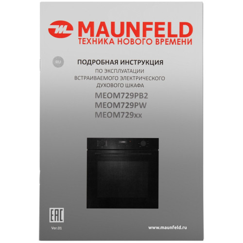 Встраиваемый духовой шкаф с фронтальной панелью из высококачественного жаропрочного тонированного стекла и цельнометаллическими ручками PUSH PULL. Класс энергопотребления А - это гарантия эффективности устройства при минимальном расходе электроэнергии. Вы можете больше не думать о счетах за электроэнергию, а только наслаждаться приготовлением вкуснейших блюд в нашем духовом шкафу. Поворотные ручки PUSH PULL в сочетании с современным сенсорным управлением обеспечивают комфортное и наиболее точную регулировку параметров приготовления. Большой цифровой дисплей духового шкафа отображает всю необходимую информацию. Большой объём 72 л. При таком объёме вы можете готовить одновременно несколько блюд, разместив решетку или противень на одном из 5 уровней боковых направляющих. Технология "Холодный фронт" представляет собой верх безопасности и защиты. Такая технология обезопасит вас от ожогов или неприятных ощущений при случайном касании, а мебель от повреждения. Установите таймер на время, необходимое для приготовления блюда и занимайтесь своими делами. В нужное время таймер оповестит вас о готовности. Блокировка управления полностью блокирует работу панели, тем самым обеспечивая безопасность вам и вашему дому. Благодаря конвекции вы можете установить противень на любом уровне и получить равномерное пропекание, хрустящую корочку. Тепло распределяется по всему объёму духового шкафа, обеспечивая равномерное приготовление блюд. Яркое внутреннее освещение делает процесс приготовления блюд ещё приятнее. Вы всегда сможете видеть состояние готовящихся блюд, контролировать их готовность, даже не открывая шкафа. Яркое внутреннее освещение делает процесс приготовления блюд ещё приятнее. Вы всегда сможете видеть состояние готовящихся блюд , контролировать их готовность, даже не открывая шкафа. Трамп-линии на внутреннем стекле дверцы создают визуальный эффект непрозрачности фасада: при выключенном освещении не видно посуду, находящуюся внутри духовой камеры, а при включенном освещении можно в деталях рассмотреть весь процесс готовки. Внутри камеры установлены 5 уровней хромированных направляющих. Такие направляющие отличаются высокой износостойкостью, устойчивостью к воздействию химических веществ. Съемная разборная дверь — преимущество электрических духовых шкафов MAUNFELD, которая дает возможность с легкостью снимать и разбирать дверь, упрощая очистку. Благодаря грилю блюдо приобретет поджаристую корочку, оставаясь нежным и сочным внутри. Эмаль лёгкой очистки позволит вам забыть о сложностях с очисткой внутренней поверхности шкафа. Специальное покрытие из жироотталкивающей эмали позволит уделять минимальное время на уход. 9 режимов духового шкафа ещё раз подчёркивают высокую функциональность данной модели. Вы можете выбрать наиболее оптимальный режим для приготовления любого блюда, а также экспериментировать, меняя режимы. Наличие глубокого противня позволяет увеличить «полезный объём» духового шкафа. Высокие бортики глубокого противня не дают жиру разбрызгиваться и позволяют дольше сохранить блюдо горячим. Благодаря работе конвекционного вентилятора, который помогает распределять воздух комнатной температуры по всей камере, продукты деликатно размораживаются. Мощный вентилятор, который обеспечивает неп