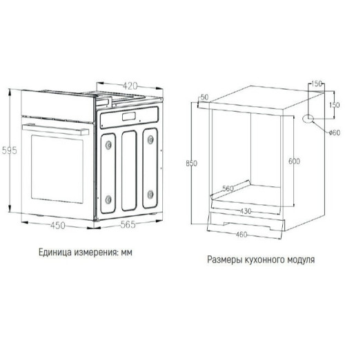 | Режимы нагрева | 59.5х59.5х54.7 |