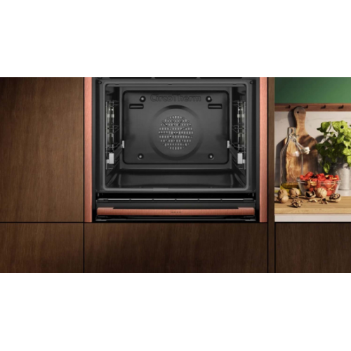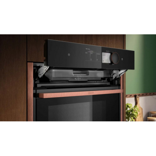 Neff B69VY7MY0 Духовой шкаф Neff B69VY7MY0 с функцией пара является одним из лучших выборов на рынке кухонной техники. Этот уникальный прибор сочетает в себе высокое качество исполнения, современный дизайн и инновационные технологии, что делает его идеальным решением для любого дома. Функция пара в духовом шкафе Neff B69VY7MY0 обеспечивает равномерное распределение тепла и влаги внутри камеры, что улучшает процесс приготовления блюд и помогает сохранить их сочность и нежность. Благодаря этой функции можно добиться отличных результатов при запекании, готовке на пару, приготовлении выпечки и многих других кулинарных мероприятиях. Помимо функции пара, духовой шкаф Neff B69VY7MY0 обладает множеством других полезных возможностей, таких как пищевой датчик, программы автоматического приготовления, сенсорное управление, самоочищение и многое другое. Этот шкаф станет незаменимым помощником в вашей кухне и позволит вам создавать великолепные блюда для семьи и друзей. Дополнительный аксессуар/магнитный переключатель Twist Pad Flex (не входит в комплект) Стеклянная дверь CoolTouch / Четырехстворчатая хрустальная дверь Внутренняя поверхность полости/Эмаль антрацит Паровой удар Добавьте интенсивный пар на 3 минуты одним нажатием кнопки. Предложение по температуре Светодиодный Кнопка включения/выключения Индикатор уровня воды в резервуаре Подключение к Home Connect/управление духовкой через приложение Для удаленной диагностики неисправностей Для удаленного доступа и работы устройства Различные варианты интенсивности пара. Общие характеристики Класс энергопотребления: А+ Объем духовки: 71 л Программы: 20 Диапазон температур: 40-275°С Длина шнура электропитания: 120 см. Мощность: 3600 Вт Размеры устройства (ВxШxГ): 59,5x59,6x54,8 см Встроенные размеры (ВxШxГ): 58,5x56x55 см. Дополнительно Slide & Hide / Удобная в обращении дверца духовки, которая сдвигается для неограниченного доступа Функция пиролиза / Наблюдайте за тем, как ваши любимые приборы органично сочетаются друг с другом Высокий уровень пара Средний уровень пара Низкий уровень пара Блокировка дверцы при пиролитической очистке Замок безопасности для детей. Характеристики Тип духовки электрическая Объем духовки (л) 71 Цвет корпуса черный Гриль есть Количество режимов 20 Высота ниши (см) 59.5 Ширина ниши (см) 56.8 Управление сенсорное Встроенная СВЧ нет Встроенная пароварка нет Открытие дверцы откидная Бренд: Neff Модель: B69VY7MY0