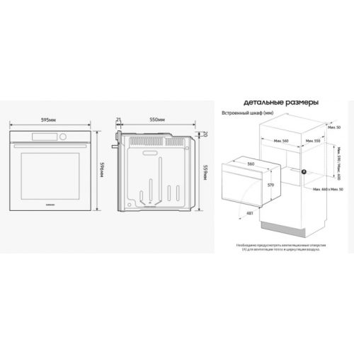 Samsung- NV7B4125ZAK/WT Тип духового шкафа: Электрический Тип подключения: Независимый Тип духовой печи: Single Fan Тип дверцы: Открывается вниз Стекло дверцы духового шкафа: Двойное Система плавного закрытия дверцы Тип дисплея: LED / Белый Внутреннее покрытие: Керамика Тип управления: Поворотные ручки Тип освещения: Галогенное (25 Вт) Тип очистки: Каталитическая Очистка: Паром Wi-Fi подключение Таймер отсчета времени приготовления Таймер завершение приготовления Блокировка для безопасности детей Часы Внутреннее освещение (Положение): Верхнее / Боковое Поддержка приложения SmartThings Режимы работы: Автоматические программы: 20 Верхний гриль: 1600 / 1100 Вт Нижний гриль: 1100 Вт Верхний нагрев + конвекция: 40~250℃ Большой гриль: 100~270℃ Нижний нагрев + Конвекция: 40~250℃ Конвекция: 1800 Вт Характеристики: Полезный объем духовки: 76 л Выходная мощность: 3500-3850 Вт Диапазон температур (единая камера): 30~250 (Grill 100~270) Класс энергоэффективности: A+ Освещение: 25 Вт Размеры прибора (ВхШхГ): 596x595x570 мм Размеры для встраивания (ВхШхГ): 579x560x549 мм Размеры упаковки (ВхШxГ): 660х694х660 мм Вес нетто: 31.2 кг Вес брутто: 36.0 кг Цвет: Черный (Clean Black) Комплектация: Противень для выпекания (ед.) - 2 шт. ( 30 мм.- 1 шт., 50 мм. - 1 шт.) Квадратная решетка (ед.) - 1 шт. Телескопические направляющие – 1 уровень