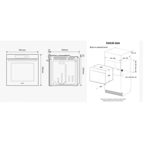 Samsung- NV7B4245VAK/WT Тип духового шкафа: Электрический Стиль: Bespoke Тип подключения: Независимый Тип духового шкафа: Dual Cook Тип дверцы: Открывается вниз Стекло дверцы духового шкафа: Двойное Плавное закрытие дверцы Тип дисплея: LED Внутреннее покрытие камеры: Керамика Тип управления: Сенсорный Тип освещения: Галогенное (25 Вт) Тип очистки: Каталитическая Очистка: Паром Тип пара: Естественный пар Wi-Fi подключение Поддержка приложения SmartThings Автоматические программы: Для одного блюда 40шт / Dual Cook 10шт Air Sous Vide Таймер приготовления Защита от детей Таймер завершения Часы Режимы работы: Тип пара: Естественный пар Верхний гриль (Внутр./внешн.): 1600 / 1100 Вт Нижний гриль: 1100 Вт Верхний нагрев + конвекция Большой гриль Гриль с функцией Эко Нижний нагрев + конвекция Конвекция: 1200 / 1200 Вт Характеристики: Полезный объем духовки: 76 л Выходная мощность: 3650-3950 Вт Диапазон температур (единая камера): 30~250 (Grill 100~270) Класс энергоэффективности: A+ Диапазон температур (верхняя или нижняя камера): 40~250 °C Energy Efficiency Class (UZ): A Energy Efficiency Class (BE): A+ Освещение: 25Вт / 40Вт Размеры прибора (ВхШхГ): 596x595x570 мм Размеры рабочей камеры (ВхШxГ): 579х560х549 мм Размеры для встраивания (ВхШхГ): 579x560x550 мм Размеры упаковки (ВхШxГ): 660х694х660 мм Вес нетто: 37.0 кг Вес брутто: 40.5 кг Цвет корпуса: Черный Аксессуары: Противень для выпекания Универсальная решетка Телескопические направляющие - 1 уровень (половина) Natural Steam Tray