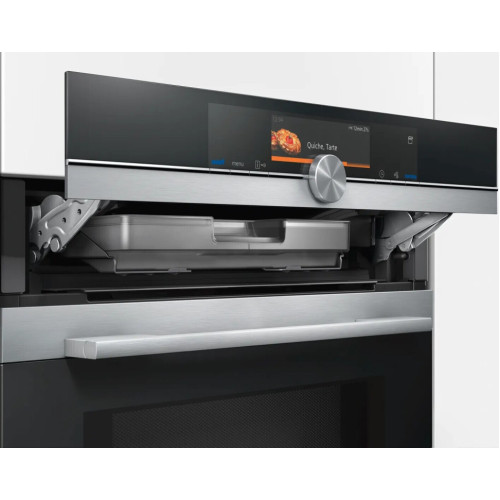 Компактный духовой шкаф Siemens CN678G4S1 высотой 45 см и встроенной микровлновой печью, функцией добавления пара pulseSteam и сенсорами для достижения оптимальных результатов. Микроволны и функция pulseSteam могут работать в комбинации с традиционными режимами нагрева - максимум возможностей. Сенсорный TFT-дисплей обеспечивает отличное отображение информации с удобной навигацией по меню. Функции roastSensor Plus и bakingSensor точно определяют момент окончания приготовления блюда. Автоматическая функция пиролитической самоочистки activeClean. Меню cookControl Plus гарантирует успех приготовления для великого множества различных блюд.