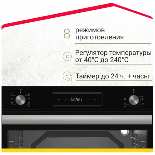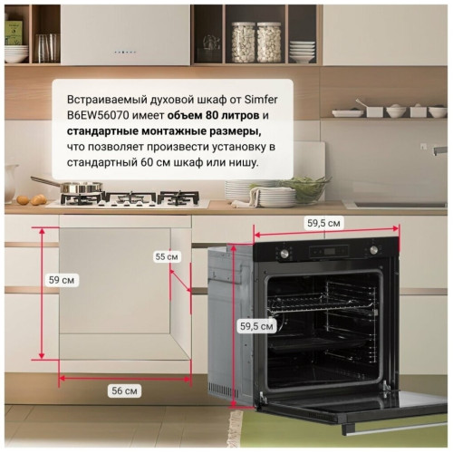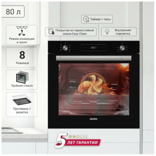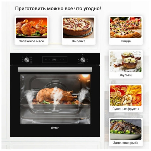 Электрический духовой шкаф Simfer B6ES68122 - современная техника для кухни, которая благодаря многообразию режимов, позволяет готовить не только повседневную пищу, но и изысканные блюда. Она снабжена функцией конвекции, которая равномерно распределяя теплый воздух, пропекает блюдо со всех сторон. С помощью удобных поворотных ручек легко выбрать необходимый режим приготовления для любого рецепта. Встроенная подсветка позволит наблюдать за процессом, не открывая при этом дверцу шкафа, а значит сохраняя тепло внутри. Таймер подскажет, когда блюдо будет готово, а двойное стекло защитит от ожога при случайном прикосновении к дверце шкафа. Эта простая в управлении, стильная и современная техника прекрасно впишется как в классический интерьер, так и в самый современный.