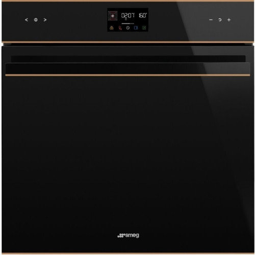 Многофункциональный духовой шкаф с пиролизом, 60 см, 10 функций, черное стекло Eclipse, медный профиль. Класс энергопотребления А+