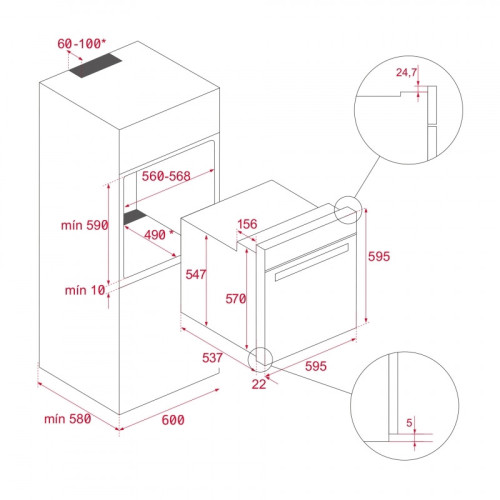 Описание * Мультифункциональный духовой шкаф * Объем: 70 л * Чёрное стекло / чёрная эмалированная панель управления * Утапливаемые регуляторы * 8 режимов: верхний+нижний нагрев, ECO, гриль, максигриль, верхний нагрев+нижний нагрев+вентилятор, максигриль+вентилятор, нижний нагрев, разморозка * Сенсорная панель управления с блокировкой панели управления * 5-ти уровневые хромированные направляющие * 1 глубокий противень * 1 решётка * 2 стекла * Hydroclean ECO * Класс энергопотребления А+ * Кабель 110 см без вилки * Подсветка галогеновой лампой 25 В * Максимальная номинальная мощность 2550 Вт * Сделано в Испании