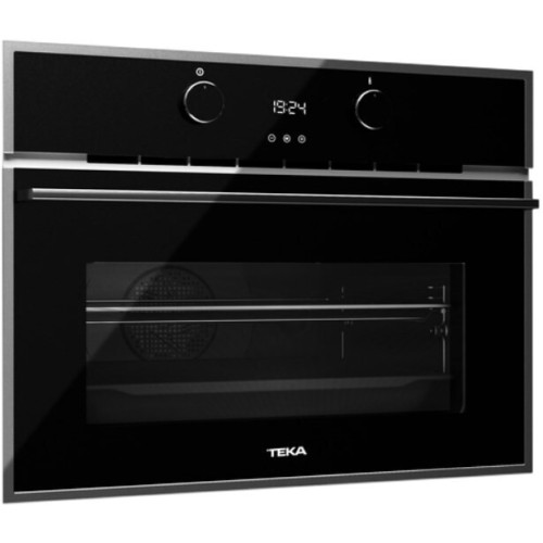Описание Описание модели Teka HLC 840: Компактный мультифункциональный духовой шкаф Teka HLC 840 из серии MAESTRO выполнен в инновационном для производителя дизайне и дополнен множеством интеллектуальных решений. Черное стекло сочетается с элементами из нержавеющей стали с нанесенным на нее покрытием от отпечатков пальцев. Cистема очистки Hydroclean PRO в сочетании с эмалью ECO быстро удалит накипь и жир, для этого нужны лишь стакан воды и 24 минуты. Модель оснащена механизмом SoftClose, который плавно открывает и закрывает дверцу духовки, а также технологией Cool Touch System, снижающей температуру стекла во избежание ожогов. Ключевые преимущества: * класс энергопотребления А+ * защита от детей * механизм SoftClose ОБЩИЕ ХАРАКТЕРИСТИКИ Тип духовки \t независимая Способ подключения \t электрический Ширина (см) \t 59.5 Высота (см) \t 45.5 Глубина (см) \t 55.9 Габариты, см (ВхШхГ) \t 45.5х59.5х55.9 Размеры ниши для встраивания, см (ВхШхГ) \t 45х56-56.8х49 Объем (л) \t 44 Вид духовки \t компактная ДИЗАЙН Коллекция \t Maestro Цвет \t черный Фурнитура \t нержавеющая сталь Материал панели управления \t стекло Нержавеющая сталь с защитным покрытием от следов пальцев \t Да ФУНКЦИИ, ТЕХНОЛОГИИ Тип гриля \t электрический Быстрый разогрев \t Да Функция ECO \t Да УПРАВЛЕНИЕ Программатор \t электронный Переключатели \t сенсорные поворотные Дисплей \t LCD Таймер \t Да РЕЖИМЫ НАГРЕВА Количество режимов нагрева \t 9 Верхний / нижний нагрев \t Да Макси-гриль \t Да Макси-гриль с конвекцией (вентилятор) \t Да Нижний нагрев \t Да Турбо \t Да ДОПОЛНИТЕЛЬНЫЕ РЕЖИМЫ Функция разморозки \t Да Режим для пиццы \t Да ОЧИСТКА Очистка \t HydroClean PRO Внутреннее покрытие духовки \t инновационное Slippery КОМФОРТ Дверца духовки \t откидная Доводчик двери \t Да Освещение \t лампа накаливания Количество ламп \t 1 Тип направляющих \t хромированные Телескопические направляющие \t на 1-м уровне Кол-во уровней приготовления \t 4 Температурный диапазон, °С \t 50-250 Съемное стекло дверцы \t Да БЕЗОПАСНОСТЬ Защита от детей \t Да Защита от ожога грилем \t Да Количество стекол дверцы духовки \t 3 Вентиляция \t тангенциальная ТЕХНИЧЕСКИЕ ХАРАКТЕРИСТИКИ Класс энергопотребления \t A+ Макс. номинальная мощность, кВт \t 3.215 Мощность гриля (кВт) \t 1.4 Мощность макси-гриля (кВт) \t 2.5 Напряжение (В) \t 220-240 Частота тока (Гц) \t 50-60 Освещение (Вт) \t 25 Кабель (м) \t 1.06 Вилка \t Нет ДОПОЛНИТЕЛЬНЫЕ ПАРАМЕТРЫ Принадлежности \t 1 усиленная решетка 1 глубокий противень с покрытием Slippery