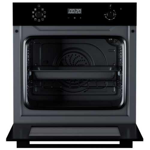 Электрический духовой шкаф черного цвета с внутренним объемом 73 литра станет стильным и функциональным решением для вашей кухни. Телескопические направляющие позволяют удобно, одной рукой выдвинуть противень с готовящейся пищей, например чтобы перевернуть её, полить соусом или достать блюдо после приготовления. С технологией SoftClosing дверь духового шкафа закрывается плавно и без хлопков или ударов. Если у вас заняты руки, просто слегка подтолкните дверь, чтобы она вернулась в закрытое состояние. «Горячий воздух 3D» помогает готовить несколько блюд параллельно на разных уровнях: вентилятор в сочетании с кольцевым нагревательным элементом распределяет воздушные потоки таким образом, что пища равномерно прогревается. Отделка Dark Inox придаёт дизайну духового шкафа изысканность и оригинальность. Функция таймера с отложенным стартом автоматизирует работу прибора. Он начнёт работу в установленное время, а по завершении программы самостоятельно отключится и подаст сигнал о готовности. Благодаря тому что регуляторы утапливаются, духовой шкаф имеет стильный облик, а мыть плоскую панель управления становится легко и удобно. Выполненная в эффектном сером цвете эмаль духового шкафа произведена по технологии, облегчающей очистку после использования.