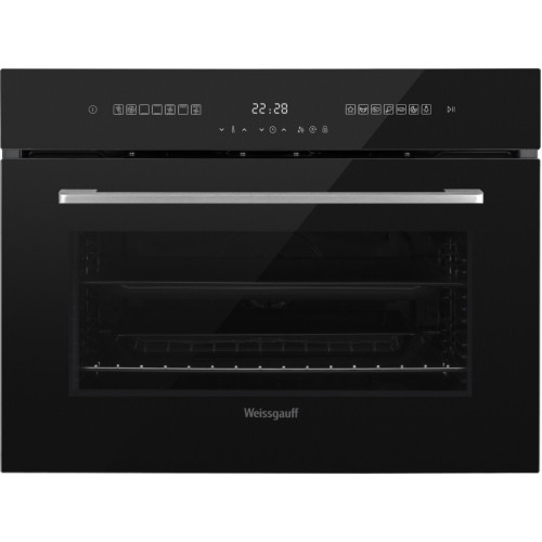 Компактный духовой шкаф от Weissgauff, оснащенный 13 режимами приготовления (7 основных + 6 дополнительных), крупным дисплеем с расширенной индикацией и сенсорным управлением, тройным стеклом в дверце и выполненный в чёрном цвете - это впечатляющий функционал, воплощенный в невероятно эргономичном устройстве! Объем 50 литров дает вам полную уверенность в том, что несмотря на компактные размеры этого духового шкафа, вы сможете разместить в нем сразу весь необходимый объем пищи, порадовав себя и своих близких изысканными блюдами, приготовленными в духовом шкафу Weissgauff на действительно ресторанном уровне. Высота 45 см открывает более широкие возможности по установке данной модели, позволяя разместить её даже в самую небольшую кухню! При желании вы можете установить этот духовой шкаф в колонну, и тогда работа с ним станет ещё удобнее! 13 впечатляющих функций, которыми вы действительно будете пользоваться: Размораживание, Турбоконвекция, Нижний нагрев, Верхний и нижний нагрев (традиционное приготовление), Верхний и нижний нагрев с конвекцией, Двойной гриль, Двойной гриль с конвекцией, Выпечка, Мясо, Птица, Рыба, Пицца, Режим освещения. Режим ускоренного нагрева позволит в кратчайшее время разогреть духовой шкаф до требуемой температуры перед началом приготовления. Удобный сенсорный дисплей с крупной индикацией - это настоящая гордость Weissgauff, ведь он не только является интуитивно понятным, но и великолепно реагирует на прикосновения с первого нажатия даже в том случае, если руки влажные или прохладные * Блокировка от детей - эффективная защита от незапланированной активации устройства, например, в результате случайного нажатия во время уборки или попытки включения прибора детьми. * Тройное стекло дверцы, воплощающее в себе весь подход к безопасности и термозащите, который Weissgauff реализовали в данной модели. Теперь случайные прикосновения к дверце духового шкафа во время процесса приготовления еды больше будут не страшны, ведь мы позаботились о том, чтобы фронтальная сторона духового шкафа никогда не нагревалась до опасных температур. * Съемное стекло дверцы, делает процесс очистки духовки гораздо более удобным и простым: всего лишь разберите дверцу за считанные минуты, чтобы совершить чистку всех труднодоступных мест, вернув облику вашего духового шкафа первозданную чистоту. Гидролизная очистка - особая технология, благодаря который вы раз и навсегда забудете те дни, когда духовой шкаф необходимо было с большим трудом вычищать, вкладывая в это непозволительно много времени и сил. Weissgauff понимает, что в современном мире время является одной из наивысших ценностей - поэтому мы оснастили данную модель функцией гидролиза: всего лишь добавьте небольшое количество воды, и духовой шкаф сам отпарит все загрязнения, используя