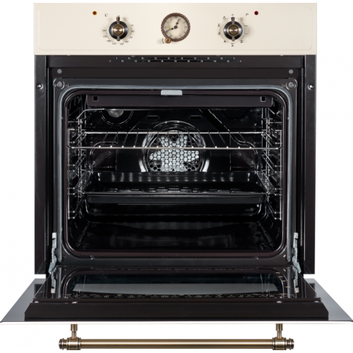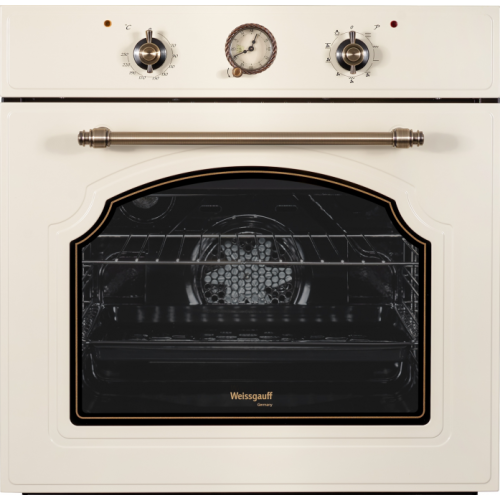 Weissgauff EOA 69 OW 324 590 КЛЮЧЕВЫЕ ХАРАКТЕРИСТИКИ * объем 58 литров * цвет - эмаль цвета слоновой кости * 9 режимов приготовления * механическое управление * рабочий диапазон регулируемого термостата: 50-250°C * аналоговые часы * таймер * гриль * подсветка духовки: 1 галогенная лампа ОСОБЕННОСТИ 9 режимов нагрева * конвекция * верхний нагревательный элемент * нижний нагревательный элемент * верхний и нижний нагрев (традиционное приготовление) * верхний нагревательный элемент и вентилятор * нижний нагревательный элемент и вентилятор * турбоподогрев + вентилятор (конвекционный нагрев) * гриль * гриль и вентилятор Аналоговый программатор В Weissgauff знают, насколько важно, чтобы каждый элемент вашего духового шкафа соответствовал единой концепции его стиля и дизайна, оставаясь при этом функциональным и удобным. Аналоговый программатор, который компания использует в моделях коллекции RUSTIC - отличный пример такого внимания к деталям. Вы можете не только использовать его как часы, но и выставлять на нём таймер приготовления до 180 минут. По окончании времени готовки, устройство издаст мелодичный и чёткий звук. Телескопические направляющие По-настоящему удобным аксессуаром, который уже идет в комплектации к данной модели, станут для вас хромированные телескопические направляющие. Благодаря своей технологичной конструкции, они выдерживают вес даже самого массивного блюда. Теперь вы можете уверенно выдвигать даже горячий противень, ведь направляющие защитят его от опрокидывания, и предоставляя возможность быстро и безопасно остыть. Переставляйте их с уровня на уровень за считанные секунды, когда это необходимо. А хромированное покрытие сделает процесс чистки и ухода за направляющими гораздо более простым. Конвекция Специальный вентилятор обеспечит перемещение нагретых масс воздуха во внутреннем пространстве духового шкафа. Это позволяет равномерно пропекать продукт со всех сторон. При использовании конвекции, ваш кулинарный шедевр никогда не подгорит снизу, и при этом идеально пропечётся сверху. Особенно рекомендуется использовать конвекцию, когда вам нужно высушить большое количество выделившегося сока или пропечь достаточно крупное по размерам блюдо ( большой пирог, цельный кусок мяса или крупную тушку птицы). Нагрев до 250 градусов Плавно поворачивая рукоятку регулировки температуры, вы сможете выставить любое необходимое вам значение вплоть до 275 градусов С. Используйте минимальные значения температуры для разморозки или высокие - для блюд из мяса и рыбы, требующих высокой температуры и интенсивной прожарки. Рукоятки класса