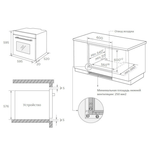 | Режимы нагрева | 59.7х59.6х52.7 |
