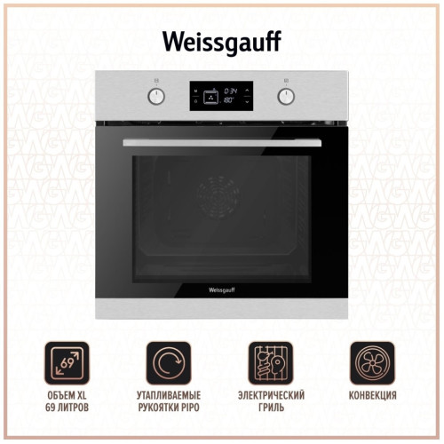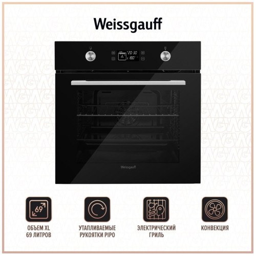 Электрический духовой шкаф от Weissgauff, выполненный в белом цвете, оснащён чувствительным сенсорным управлением, крупным цифровым дисплеем с расширенной индикацией и визуальным отображением выбранной программы, утапливаемыми рукоятками PIPO и 9 режимами, каждый из которых раскроет для вас новые возможности приготовления вкуснейших блюд! Объем XL 69 литров дает вам полную уверенность в том, что приобретая этот духовой шкаф, вы сможете разместить в нем сразу весь необходимый объем пищи, и даже профессионально работать на нескольких уровнях одновременно, порадовав себя и своих близких настоящим пиром, приготовленным в духовом шкафу Weissgauff на действительно ресторанном уровне. Крупный цифровой дисплей с расширенной индикацией, включающей в себя визуальное отображение выбранной программы, заданной температуры, а также настроек времени и таймера приготовления, выведет удобство работы с духовым шкафом на действительно новый уровень! Утапливаемые рукоятки PIPO - это эффективная защита элементов управления от случайных переключений и жировых испарений в процессе приготовления еды, а также дополнительное удобство при работе с духовым шкафом, дополняющее его технологическое совершенство. Сенсорный программатор - это настоящая гордость Weissgauff, ведь он не только является интуитивно понятным, но и великолепно реагирует на прикосновения с первого нажатия даже в том случае, если руки влажные или прохладные 9 функций духового шкафа, предлагающих самые необходимые и наиболее востребованные режимы: размораживание, турбоконвекция, верхний + нижний нагрев (традиционное приготовление), верхний + нижний нагрев с конвекцией, пицца, гриль, двойной гриль, двойной гриль с конвекцией, режим освещения. Электрический гриль, расположенный в камере духового шкафа, расширяет ваши возможности приготовления вкуснейших блюд, позволяя добиваться эффекта аппетитной золотистой корочки! Конвекция сделает распределение тепла в камере духового шкафа ещё более эффективным, обеспечивая интенсивное нагнетание и циркуляцию горячего воздуха! Комплектация, включающая в себя противень и решетку для гриля, обеспечивает вас всем необходимым для приготовления по-настоящему вкусной еды без необходимости докупать дополнительные комплектующие! Гидролизная очистка - особая технология, благодаря который вы раз и навсегда забудете те дни, когда духовой шкаф необходимо было с большим трудом вычищать, вкладывая в это непозволительно много времени и сил. Weissgauff понимает, что в современном мире время является одной из наивысших ценностей - поэтому мы оснастили данную модель функцией гидролиза: всего лишь добавьте небольшое количество воды, и духовой шкаф сам отпарит все загрязнения, используя