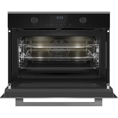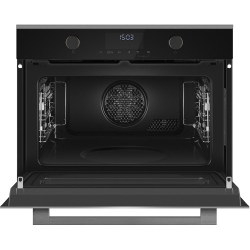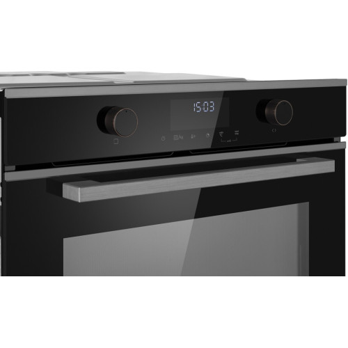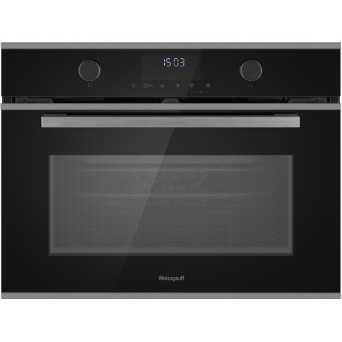 Компактный духовой шкаф с функцией СВЧ от Weissgauff, выполненный в сочетании черного закаленного стекла и черной нержавеющей стали Dusk Inox - это функционал сразу двух полноценных устройств, воплощённый в одной модели, оснащенной четырьмя стеклами в дверце и расширенной комплектацией! Встраиваемый компактный духовой шкаф с микроволнами , который сочетает в себе сразу два полноценных устройства: духовой шкаф с конвекцией и грилем, а также микроволновую печь с отдельными набором настроек и возможностью использования комбинированного режима. Дизайн Dusk Inox — это больше, чем просто внешний облик модели. Насыщенный темный цвет, воплощенный в благородстве сатинированной стали, подчеркнёт всю премиальность данного устройства и безупречность вашего вкуса! Объем 50 литров дает вам полную уверенность в том, что несмотря на компактные размеры этого духового шкафа, вы сможете разместить в нем сразу весь необходимый объем пищи, порадовав себя и своих близких изысканными блюдами, приготовленными в духовом шкафу Weissgauff на действительно ресторанном уровне. 12 удобных режимов, которыми вы действительно будете пользоваться: Конвекция, Турбогриль + конвекция, Конвекция + нижний нагрев, Турбогриль, Верхний + нижний нагрев, Верхний нагрев + нижний нагрев + конвекция, Гриль, Нижний нагрев, СВЧ + конвекция, СВЧ + турбогриль + конвекция, СВЧ + конвекция + нижний нагрев, Размораживание. 13 программ авто-меню для СВЧ, включающих в себя режимы для овощей, гарниров, выпечки и многого другого! Кольцевой нагревательный элемент, для равномерного 3D-нагрева, обеспечит по-настоящему качественное и эффективное запекание приготавливаемого блюда благодаря более эффективному распределению тепла в камере духового шкафа. Удобный сенсорный дисплей с крупной индикацией - это настоящая гордость Weissgauff, ведь он не только является интуитивно понятным, но и великолепно реагирует на прикосновения с первого нажатия даже в том случае, если руки влажные или прохладные Технологичные поворотные переключатели Soft Switch - дают уверенность в надёжности и настоящем немецком качестве духового шкафа, ведь вы будете ощущать плавность и точность движений в каждом повороте рукоятки. Блокировка от детей - эффективная защита от незапланированной активации устройства, например, в результате случайного нажатия во время уборки или попытки включения прибора детьми. * Четырехслойное стекло дверцы, воплощающее в себе весь подход к безопасности и термозащите, который Weissgauff реализовали в данной модели. Теперь случайные прикосновения к дверце духового шкафа во время процесса приготовления еды больше будут не страшны, ведь мы позаботились о том, чтобы фронтальная сторона духового шкафа никогда не нагревалась до опасных температур. * Эмаль SMART CLEAN - это особое покрытие духового шкафа, призванное сделать процесс ухода за ним еще более простым и удобным. Благодаря эмали, изготовленной и нанесенной с применением сразу ряда инновационных технологий, ваш духовой шкаф будет оснащен самым настоящим высокоэффективным щитом, препятствующим накоплению жира, запаха и загрязнений, образующихся вследствие многократного приготовления еды. * Комплектация ECO PREMIUM PLUS - включает в себя эмалированный противень для выпечки, решетку для гриля и стеклянный противень!