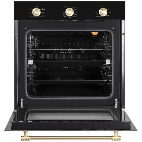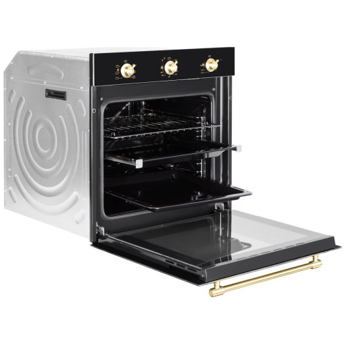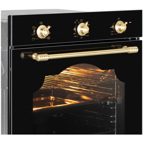 Электрический встраиваемый духовой шкаф Zigmund Shtain впишется в дизайнерское решение кухни в стиле ретро. Ретро переключатели и ручки, орнамент на светлом стекле подчеркивают изысканность этой духовки. Наслаждайтесь настоящими кулинарными шедеврами, приготовленными и при этом не тратьте лишние деньги на счета за электроэнергию вот воплощение истинного немецкого подхода к созданию эффективной бытовой техники. Превосходные результаты приготовления в духовом шкафу достигается за счет продуманного расположения верхних нагревательных элементов большой нагреватель расположен по периметру потолка, малый ближе к центру. Благодаря этому тепло распределяется равномерно, и блюдо запекается до хрустящей корочки и остается сочным внутри. Нагреватели могут работать по отдельности или вместе. * Класс энергопотребления: А * Тангенциальное охлаждение * Хромированные боковые направляющие * Телескопические направляющие * Материал лицевой поверхности: закалённое стекло * Поворотные переключатели, цвет ручек: матированное золото * Два съёмных стекла дверцы * Холодный фронт * Эмаль лёгкой очистки * 1 решётка * 2 противня * Суммарная мощность: 2140 Вт