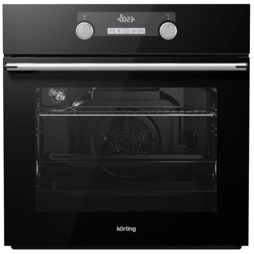 Артикул: 614-421 Встраиваемый электрический духовой шкаф Korting OKB 781 CEN Электрический духовой шкаф OKB 781 CEN имеет следующий ряд преимуществ и особенностей: Современный дизайн Сочетание стекла, стали и прямых, горизонтальных линий, используемых в духовых шкафах современного дизайна объединяет внешний вид кухонной мебели и бытовой техники, создавая полноценное решение в стиле хай-тек. Утапливаемые поворотные регуляторы При нажатии на поворотный регулятор, он фиксируется внутри панели управления, создавая прямую и ровную поверхность. Это делает невозможным случайный поворот регулятора, а также облегчает последующую очистку фронтальной панели. Спрятать регуляторы можно даже во время приготовления. Электронный дисплей Дисплей отображает фактическое время, оставшееся до окончания приготовления и настройки таймера отложенного старта. Телескопические направляющие Телескопические направляющие надежно удерживают противень на одном из нескольких уровней, что дает еще больше безопасности и комфорта – противень не нужно удерживать в руках, чтобы проверить качество приготовления блюд. Каталитическая самоочистка Поверхность задней стенки покрыта специальным каталитическим веществом, самостоятельно расщепляющим загрязнения, которые оседают на поверхности в процессе приготовления. Для очистки необходимо прогреть камеру до температуры свыше 200°C, после чего все жировые загрязнения растворяются. Каталитическая панель поможет значительно меньше тратить время на очистку, а значит получать удовольствие от частого приготовления. Очистка паром «Steam Cleaning» Специальный режим поможет очистить поверхность камеры благодаря использованию пара и влаги. Достаточно выбрать программу очистки «Steam Cleaning» и температура нагрева и длительность работы будут установлены автоматически. По завершению процесса достаточно будет промыть поверхность влажной тканью. В большинстве случаев даже не используя химические средства! Гриль Это способ приготовления пищи с помощью теплового элемента, который расположен над готовящимся блюдом. Благодаря высокой температуре пища быстро подрумянивается, приобретает красивую поджаристую корочку, оставаясь нежной и сочной внутри. 9 режимов нагрева Девять режимов, основанных на комбинации различных нагревательных элементов, позволяют приготовить совершенно любое блюдо, независимо от сложности его приготовления. Разнообразие возможностей поможет расширить кулинарные навыки или усовершенствовать существующие. Камера «Home Made» Особая конструкция камеры по своей форме напоминает форму печи, где верхняя часть устроена в виде округлого свода. Такая необычная форма позволяет более точно распределять тепло и прогревать только необходимое пространство в камере духовки, эффективно используя электроэнергию. Духовой шкаф с камерой «Home Made»