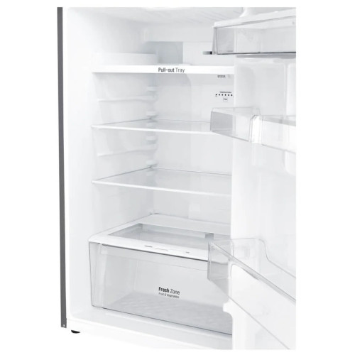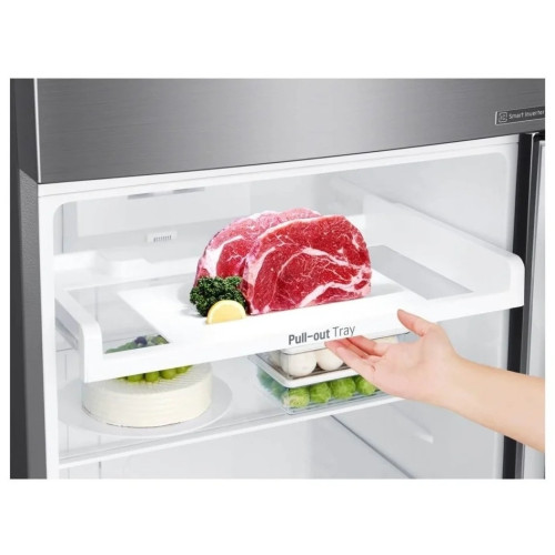 Холодильник LG GN-B422SMCL оснащен линейным инверторным компрессором, который характеризуется низким энергопотреблением и долговечностью. Морозильная камера расположена в верхней части устройства и имеет полезный объем 110 л. Для хранения продуктов есть полка и два дверных пластиковых лотка. При отключении электроэнергии температура в отделении остается неизменной на протяжении 12 ч. Уплотнитель двери с антибактериальным покрытием обеспечивает герметичное закрывание, что исключает попадание теплого воздуха внутрь. Благодаря многопоточной системе холодный воздух равномерно распределяется, что создает оптимальные условия для хранения продуктов питания. Полки из закаленного стекла в основной камере выдерживают механические нагрузки без повреждений. На двери расположены лотки для высоких бутылок, соусов и небольших банок. Нижний выдвижной ящик служит для хранения свежих овощей, зелени и фруктов. Холодильник LG GN-B422SMCL оборудован деодорайзером для устранения неприятного запаха в камере. Благодаря системе No Frost на стенках отделений не образуется наледь, а также не требуется регулярное размораживание устройства.