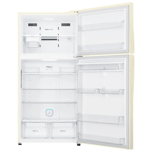 Благодаря равномерному и быстрому охлаждению, обеспечиваемому технологией DoorCooling+, ваши напитки всегда будут холодными, а продукты останутся свежими гораздо дольше. Благодаря технологии Hygiene Fresh+, устраняющей неприятные запахи и удаляющей 99,99% бактерий, в вашем холодильнике всегда будет чисто. Система многопоточного охлаждения (Multi Air Flow) равномерно распределяет холодный воздух для того, чтобы продукты оставались свежими дольше даже на верхних полках холодильника. Особая технология Инверторного Линейного компрессора LG снижает энергопотребление на 32%, уменьшает уровень шума на 25%, обеспечивает быстрое и равномерное охлаждение продуктов, сохраняя их свежесть надолго. С LG ThinQ вы можете контролировать и диагностировать ваш холодильник при помощи смартфона, даже если вы не находитесь дома. С легкостью можно установить температуру в холодильнике,активировать работу гигиенического фильтра или произвести диагностику при помощи приложения на смартфоне.