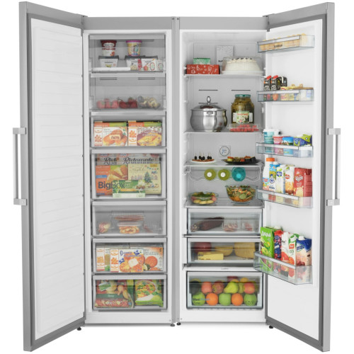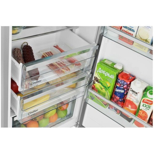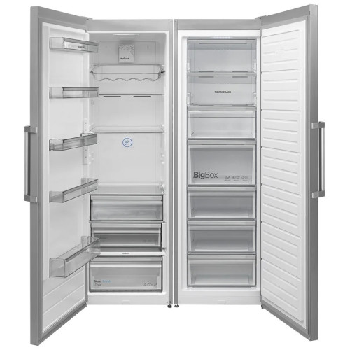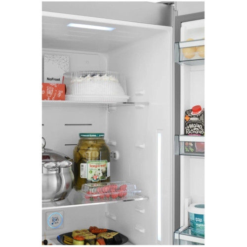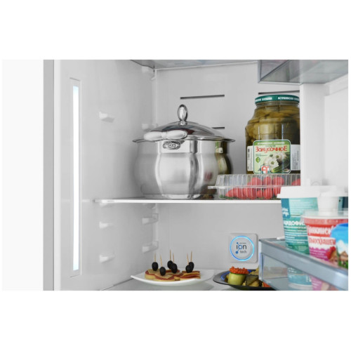 Комбинация Side by Side: холодильник R 711 EZ 12 и морозильник FN 711 E12 набор для соединения Холодильное отделение (R 711 EZ12) Дополнительная информация и технологии: Основная задача технологий Scandilux максимально продлить срок годности и свежесть ваших продуктов. No Frost Cooling Tech многопоточная система обеспечивает быстрое и равномерное охлаждение в холодильной камере, более эффективную работу и поддержку заданной температуры. Ваши продукты сохранят витамины и полезные вещества дольше Технология Natural Ion Tech является инновационным преимуществом, выделяющим Scandilux среди большинства аналогичных холодильников. Чем важна эта технология При хранении фруктов и овощей естественным образом вырабатывается этиленовый газ, который иногда называют гормоном старения. В замкнутой среде, например, в обычном холодильнике, он поглощается всеми фруктами и овощами, ускоряя процесс их порчи. Natural Ion Tech вырабатывает отрицательно заряженные ионы (равномерно распространяемые за счет многопоточной системы NoFrost), которые: - нейтрализуют этиленовый газ, тем самым продлевая срок годности и свежесть продуктов; - взаимодействуют с частицами пыли и бактериями, эффективно очищая воздух внутри камеры. Тестированием независимых лабораторий подтверждено - Natural Ion Tech улучшает качество воздуха в холодильнике и удаляет в камере до 99,99 спор и бактерий, переносимых по воздуху. Chiller Zone (зона свежести или нулевая зона) - специальное отделение, удобный выдвижной ящик на роликовых направляющих с температурой, близкой к нулю, и определенным уровнем влажности, что является оптимальным условием для хранения свежих мясных и рыбных продуктов. Maxi Fresh Zone специальное отделение, нижний выдвижной ящик на роликовых направляющих с регулировкой уровня влажности Humidity Control, в котором поддерживаются условия, оптимальные для хранения всех растительных продуктов. В комплекте есть дополнительный ящик для овощей и фруктов, который при необходимости можно убрать. LED Display простое и функциональное электронное управление, расположенное на двери, с помощью которого задается точная температура в диапазоне от 2 до 8С. Для быстрого охлаждения большого количества продуктов имеется функция Супер охлаждение. Пять полок, изготовленных из закаленного стекла, легко перемещаются по высоте и выдерживают большой вес без повреждений. LED TOP and SIDE LIGHTS светодиодное освещение, расположенное вверху и по бокам камеры. Оно ярко и равномерно освещает внутреннее пространство, делая продукты еще доступнее Chrome Wine Rack удобная хромированная полка для горизонтального хранения напитков экономит пространство внутри холодильника Технология V- LIFT позволяет регулировать высоту установки полки на двери по полозьям вверх/вниз для возможности размещения продуктов различного размера. Очень полезная функция для максимального использования пространства Стильная хромированная отделка внут