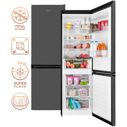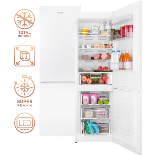 Отдельностоящий холодильник Weissgauff WRK 185, выполненный в современном дизайне, обладающий полной системой размораживания Total No Frost и фантастической вместительностью - это соотношение превосходной эргономики внутреннего пространства, технологического совершенства и великолепия внешнего дизайна!